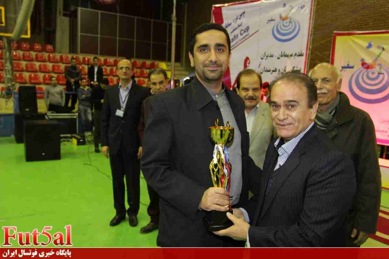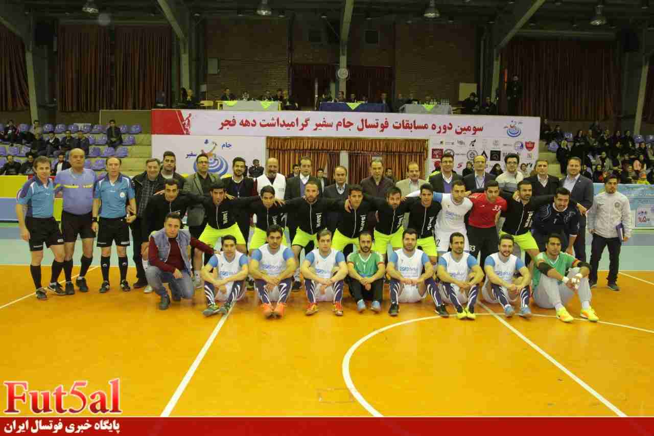 به گزارش پایگاه خبری فوتسال ایران،مراسم اختتامیه و فینال سومین دوره مسابقات فوتسال جام سفیر در روز جمعه پانزدهم بهمن بین ساعت ١٨ تا ٢١ بصورت بسیار باشکوهی در سالن دانشگاه شهید بهشتی برگزار شد. ابتدا در یک بازی دوستانه دو تیم از کوتاه قامتان الف و ب مقابل هم قرار گرفتند که با استقبال و تشویق حضار همراه بود. سپس مراسم بصورت رسمی با تلاوتی چند از کلام الله مجید و سرود جمهوری اسلامی و پخش کلیپی از خلاصه دیدارهای سومین دوره جام سفیر آغاز شد و پیشکسوتان حاضر درسالن آقایان محمد ریاحی پیشکسوت داوری ایران، حسین فرزامی پیشکسوت تیم ملی فوتبال ایران ، ابراهیم شادمهر نماینده فدراسیون فوتبال ، پهلوان خاتمی قهرمان کشتی ایران ، مصطفی عمادی پیشکسوت و سرپرست اسبق تیم ملی فوتسال ایران ، آقای شهرام زندیه دبیر ورزش سازمان نظام صنفی رایانه ای ، پویا امینی هنرمند گرانقدر و جناب مهندس جعفری و جناب سارنگ بعنوان میهمان ویژه به حاضرین معرفی شدند و سپس مسابقه فینال در حضور ناظرین مسابقات آقایان ممبینی پیشکسوت فوتبال ایران و جناب مهندس مرات نیا و مدیر عامل شرکت سفیراقای حسین نژاد و کمیته برگزاری بازیها اقایان کامبیز مهاجر پیشکسوت فوتسال ایران، فرامرز شمس پیشکسوت ورزش کارمندی و حبیب الله نظر نژاد مسئول اجرایی شرکت سفیر و با قضاوت آقایان علیرضا رمضانی ،ولی امجدی و عباس خوزستانی و پزشکیاری اقای سعید سهیلی بین دو تیم سفیر آبی آرام و بیمه دی آغاز شد که تیم سفیر آبی آرام با دو گل زود هنگام از بیمه دی پیش افتاد و این نتیجه تا پایان نیمه اول تغییر نکرد. در نیمه دوم تیم سفیر آبی آرام توانست برتری خود را دیکته کند و با زدن سه گل دیگر با نتیجه قاطع پنج بر صفر پیروز و قهرمان این بازیها شود. پس از پایان مسابقه مراسم اهدای جوایز با تقدیر از کوتاه قامتان اغاز گردید و سپس به نمایندگان تیمهای حاضر در سالن تندیس یاد بود جام سفیر اهدا گردید . کاپ اخلاق به تیم بیمه سرمد تعلق گرفت – مقام سوم مشترک به تیمهای شرکت ملی انفورماتیک و سازمان نظام مهندسی کشاورزی اهدا گردید و تیم بیمه دی نایب قهرمان و تیم سفیر آبی آرام قهرمان شد و کاپ و مدال آنان بصورت منحصر بفردی و با جلوه های ویژه نور و صدا و تصویر و با مجری گری خوب اقای پناهی و خانم رخ فروز به بهترین شکل ممکن انجام شد و از حامیان جام سفیر شرکت بیمه سرمد، شرکت زیبا موج نوین و موسسه زبان سفیر تقدیر شد. خلاصه این مراسم جمعه ٢٢ بهمن در برنامه ورزش و مردم که حدود ساعت ٢٢ از شبکه یک سیما پخش میشود نمایش داده خواهدشد. در پایان از تمامی ٣۶ تیم حاضر در مسابقات، مسئولین سالن دانشگاه شهید بهشتی ، کمیته نظارت و برگزاری مسابقات ، هیئت فوتبال و کمیته داوران استان تهران ،اصحاب رسانه ، پایگاه خبری فوتسال ایران، پیشکسوتان فوتبال و فوتسال که باعث بوجود آمدن این رخداد بزرگ شدند تشکر وقدردانی بعمل می آید و پیشاپیش از تمامی تیمهای فوتسال دعوت بعمل می آید که خود را برای حضور در چهارمین دوره جام سفیر در نیمه دوم سال ٩۶ که بهتر از سالهای قبل برگزار خواهد شد آماده نمایند.