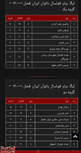 هفته ششم لیگ برتر فوتسال بانوان؛