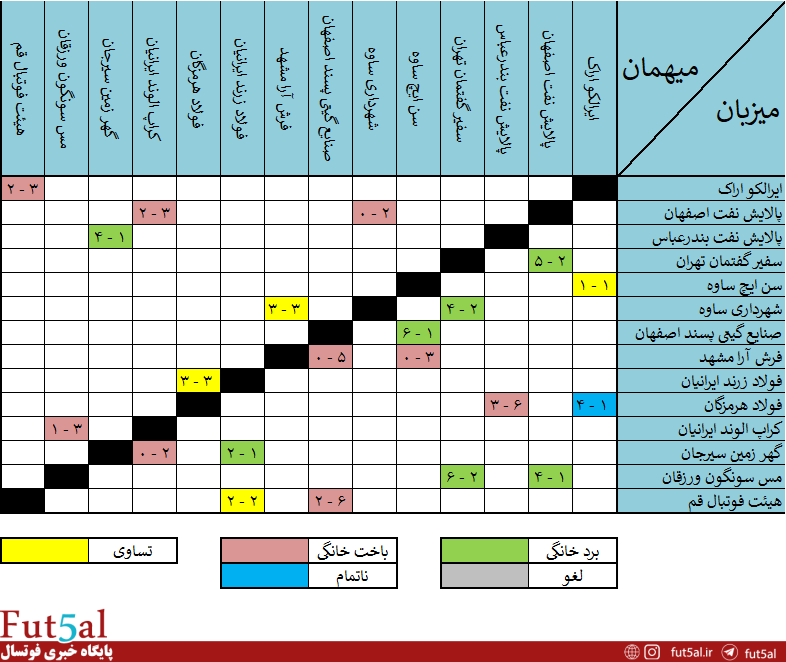 بیشترین برد: صنایع گیتی پسند اصفهان و مس سونگون ورزقان (۳ برد)