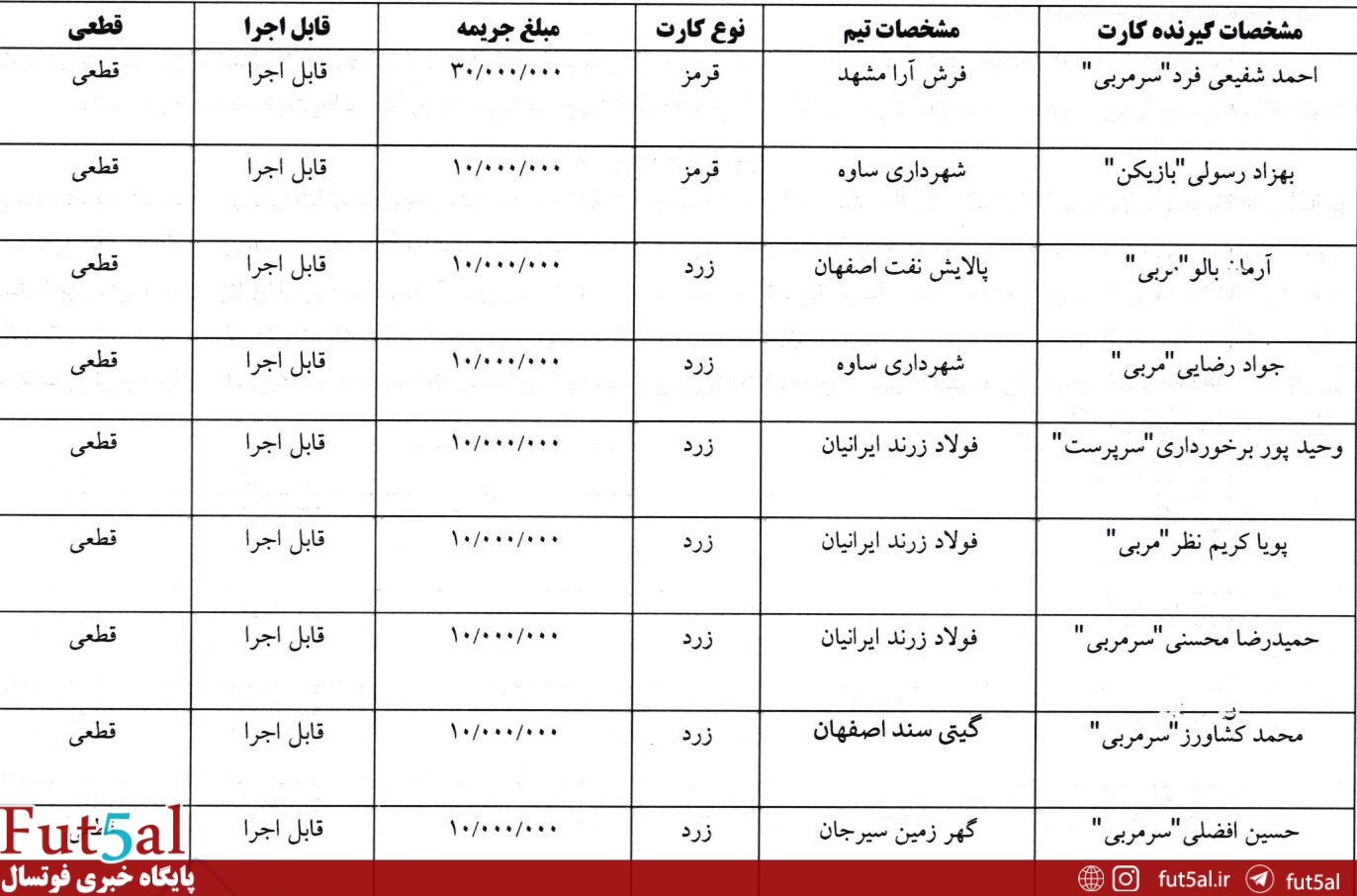 کمیته انضباطی رای خود را در خصوص تخلفات برخی از تیم های لیگ برتری فوتسال در هفته پنجم صادر کرد.