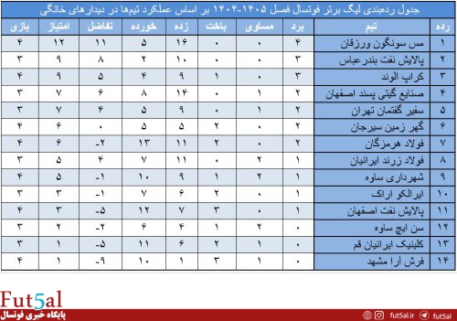 عملکرد تیمها در بازیهای خانگی