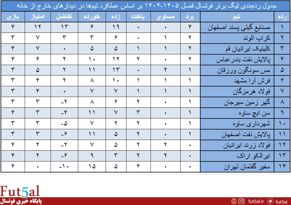 عملکرد تیمها در بازیهای خارج از خانه