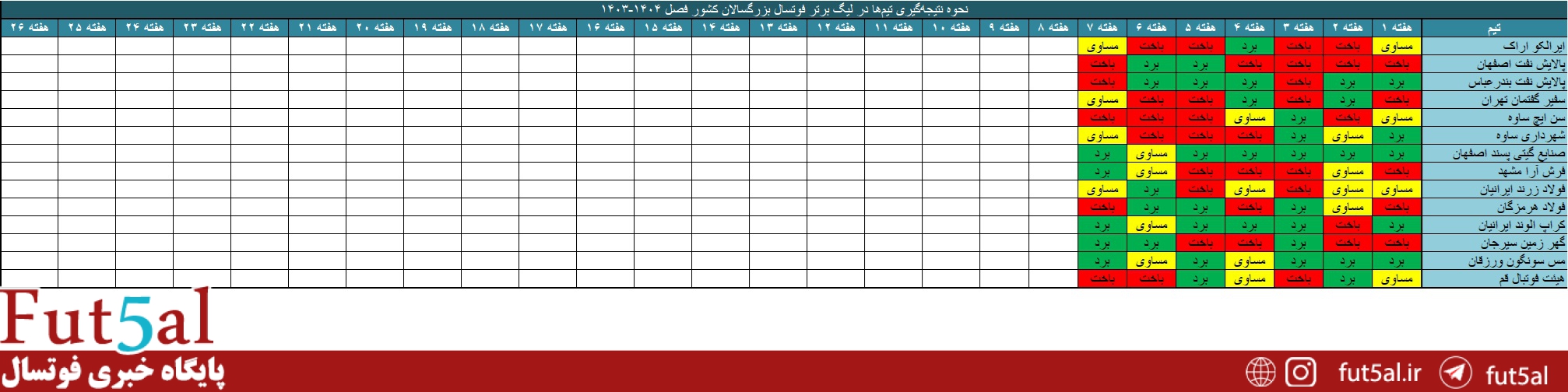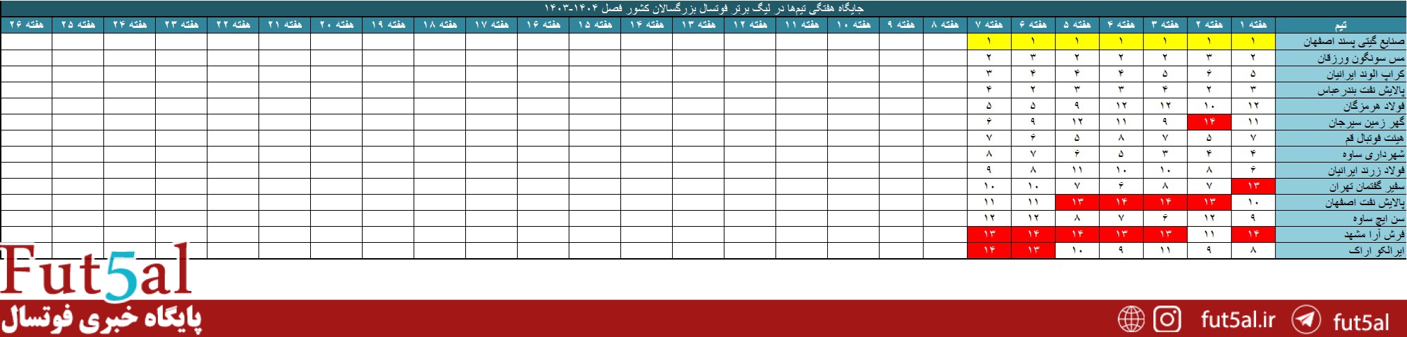 جایگاه تیمها به صورت هفتگی