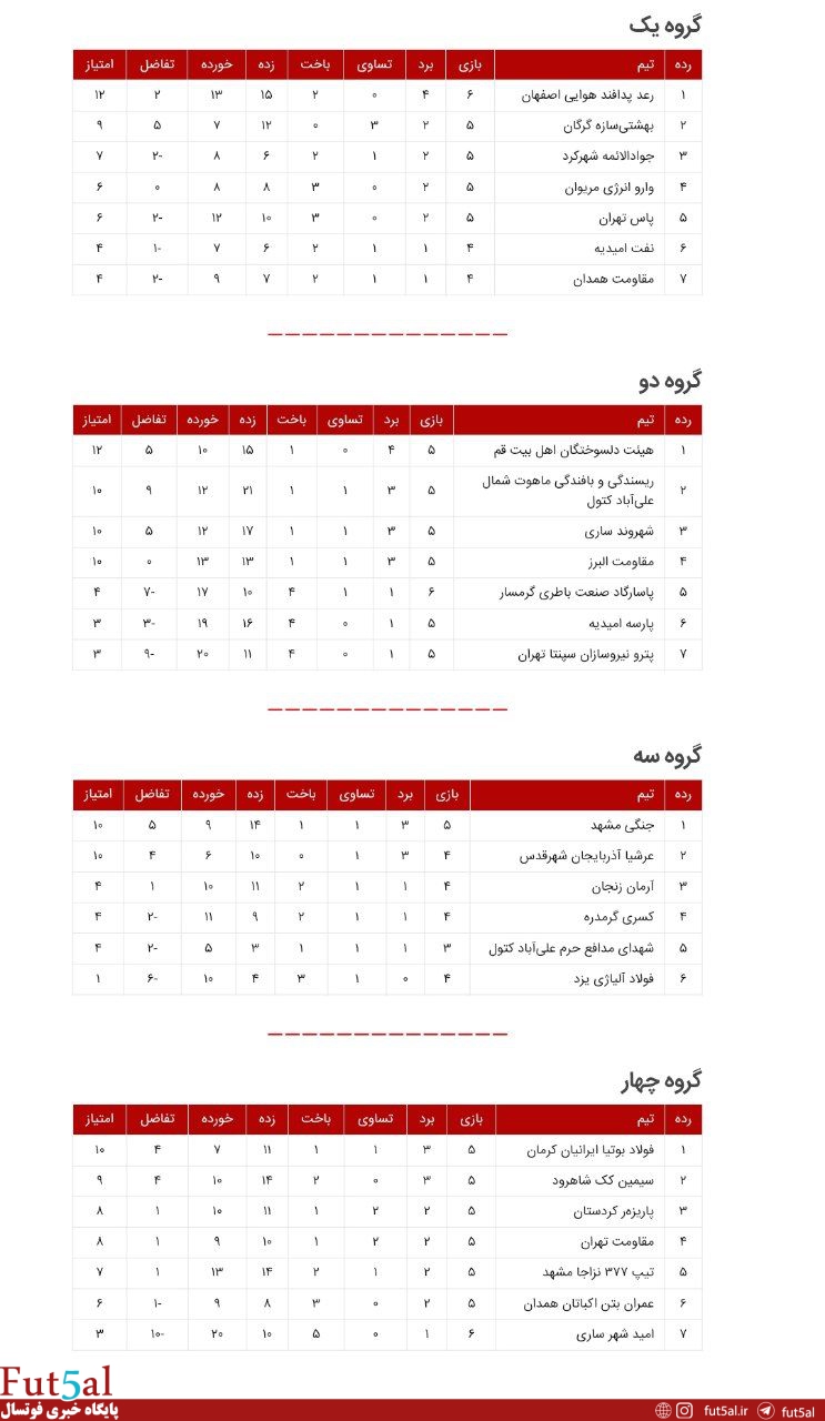 نتایج روز نخست هفته ششم مرحله نخست لیگ دسته یک + جداول