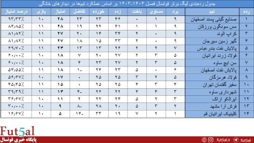 عملکرد تیمها در بازیهای خانگی