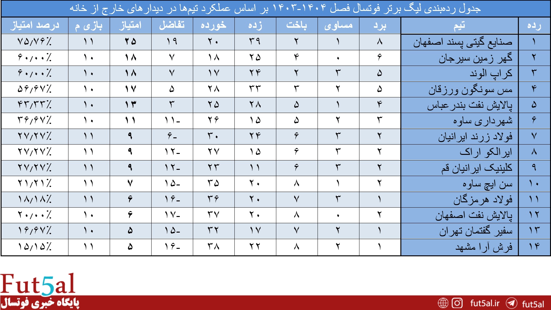 عملکرد تیمها در بازیهای خارج از خانه