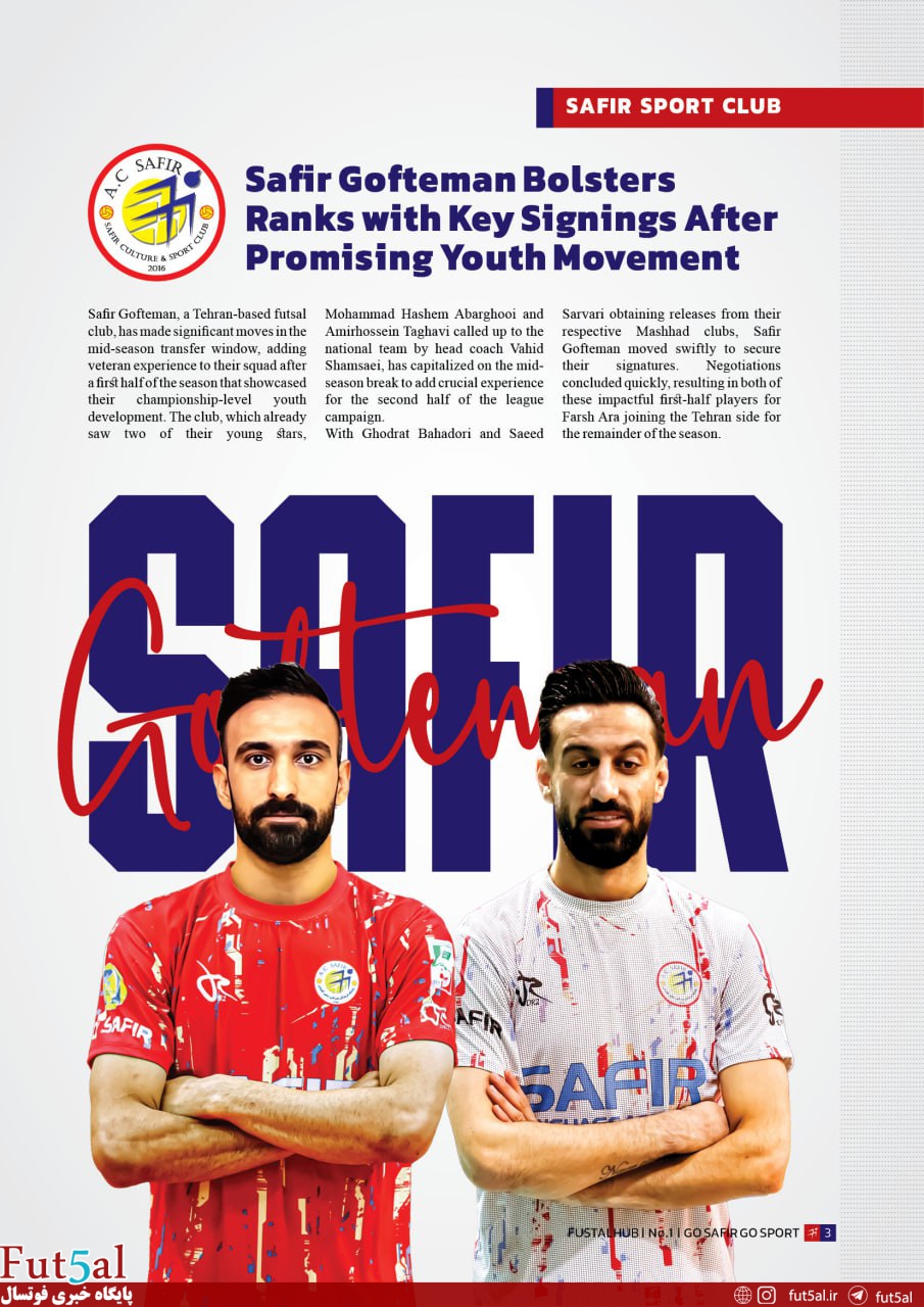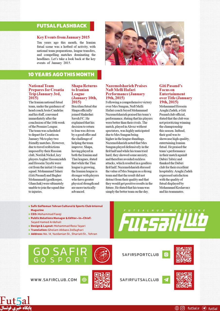 After the release of the Persian-language magazine ‘Futsalists’, Safir Gofteman Cultural and Sport Club in Tehran has launched an all-English version of the magazine named ‘Futsal Hub.’