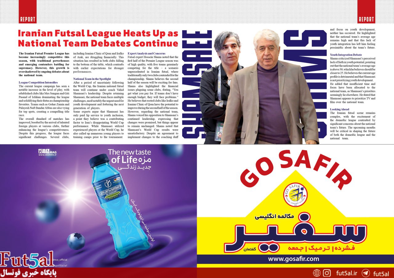 This English magazine is a valuable resource for futsal enthusiasts worldwide, as well as for English language graduates in Iran.