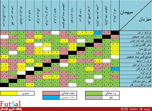 نتایج تیمهای تا پایان هفته بیستوچهارم بر اساس عملکرد داخل و خارج از خانه
