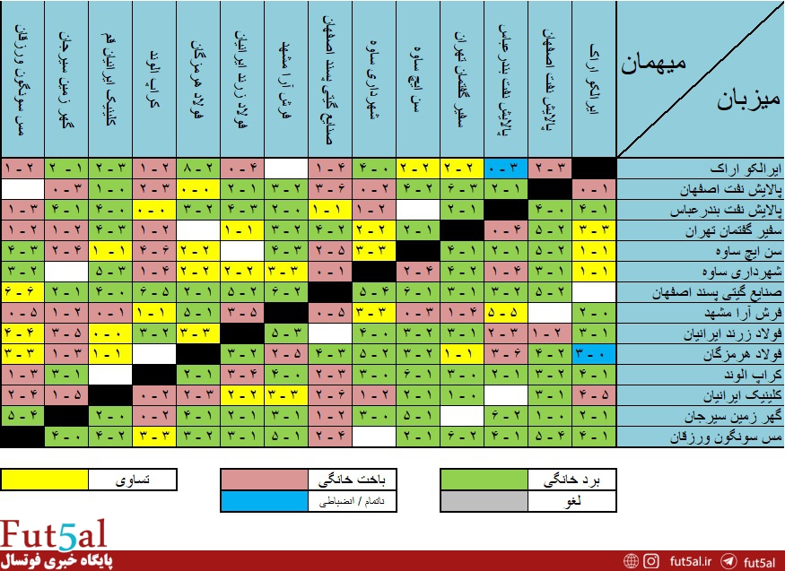 بیشترین مساوی: شهرداری ساوه و فولاد هرمزگان (۷ تساوی)