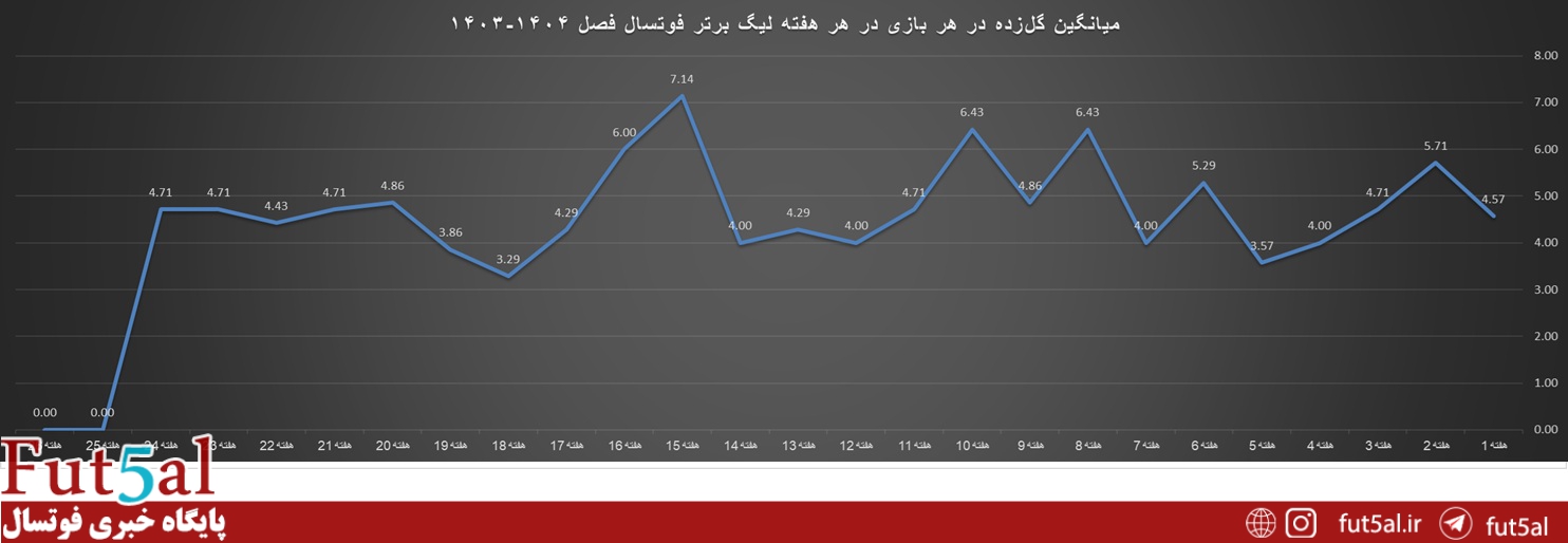 میانگین گل در هر بازی در هر هفته لیگ برتر