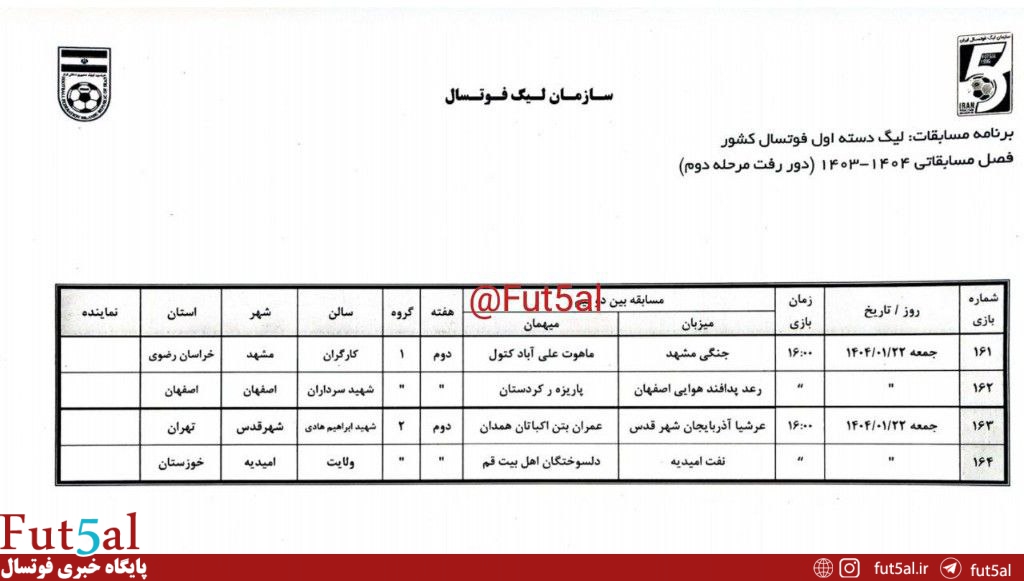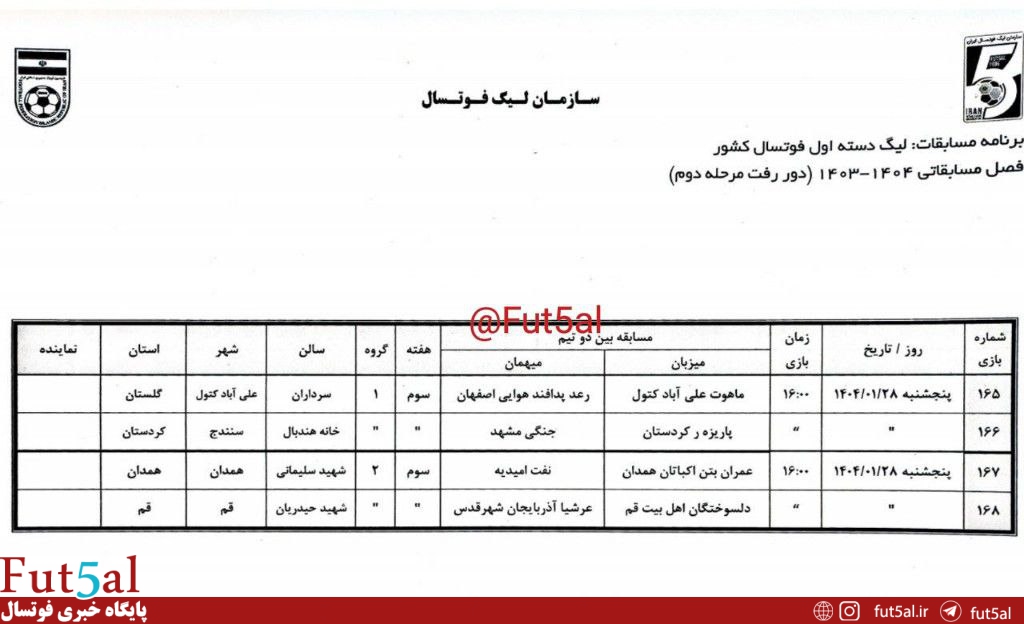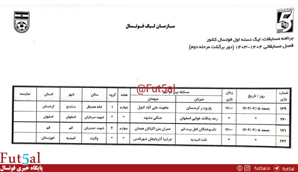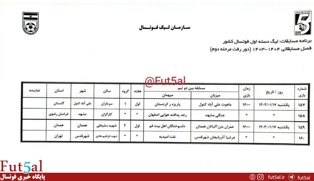 برنامه کامل مرحله دوم لیگ دسته اول از سوی سازمان لیگ فوتسال اعلام شد.