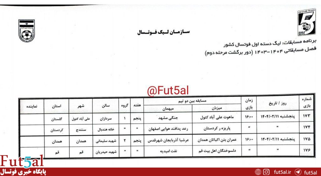 برنامه کامل مرحله دوم لیگ دسته اول