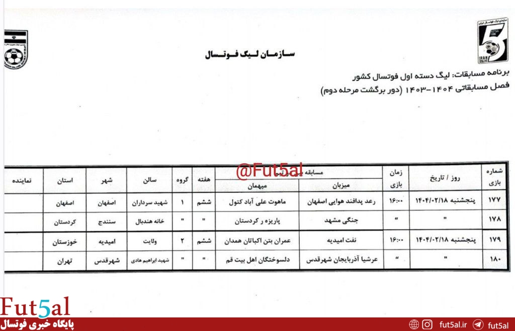 برچسب ها :لیگ دسته اول ، لیگ یک فوتسال