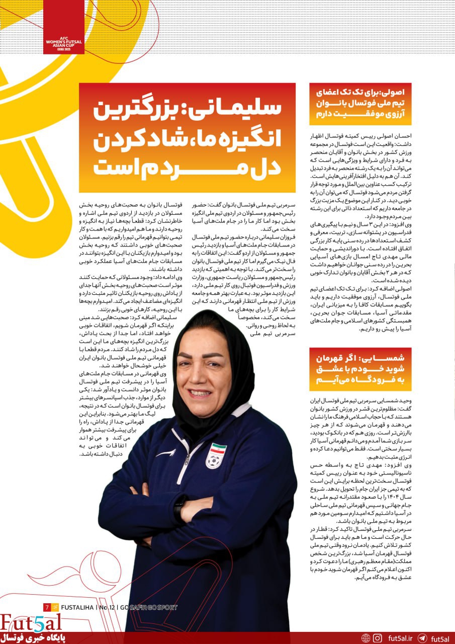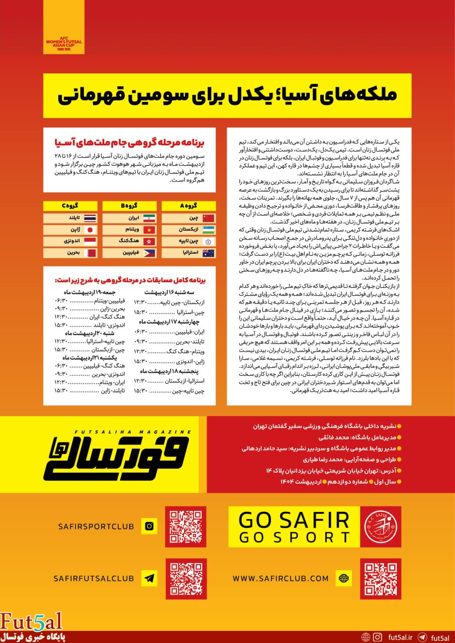 این شماره از نشریه “فوتسالی ها ” ویژه رقابت های جام ملت های بانوان آسیا ۲۰۲۵ است.