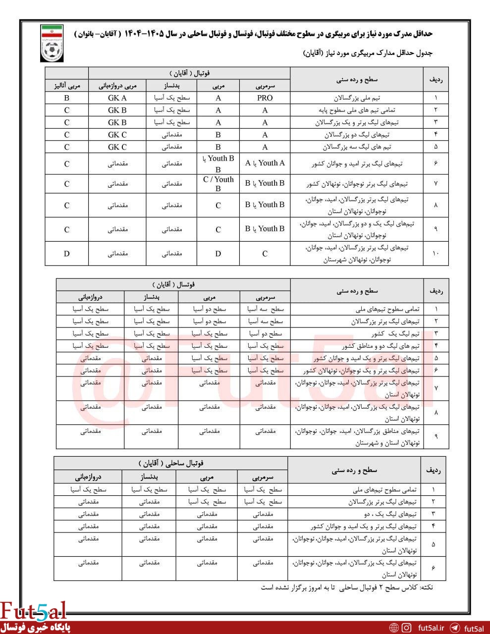 دستورالعمل فدراسیون فوتبال در خصوص حداقل مدرک مربیگری