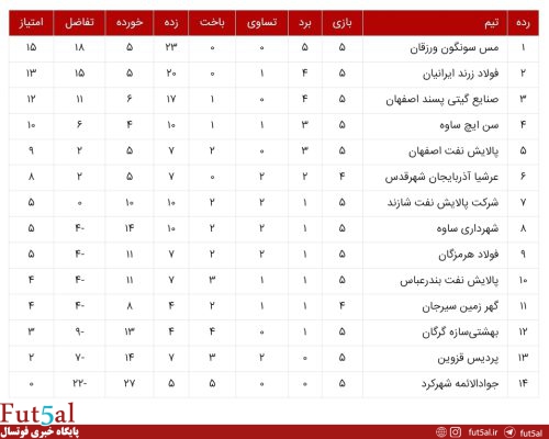 روز اول هفته پنجم لیگبرتر فوتسال؛