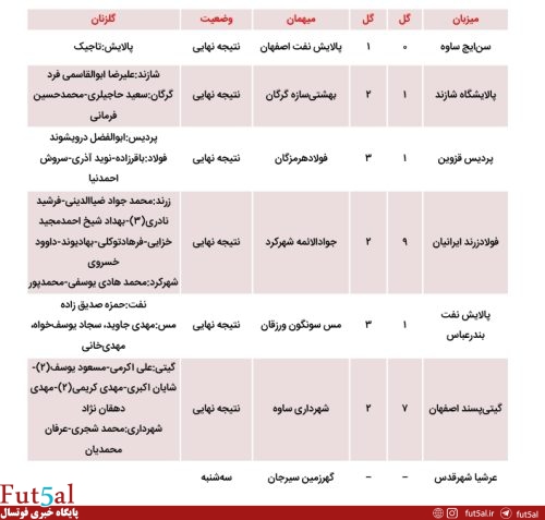 روز اول هفته پنجم لیگبرتر فوتسال؛