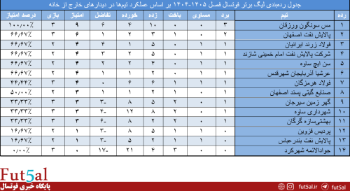 نتایج تیمهای در طول فصل بر اساس عملکرد داخل و خارج از خانه