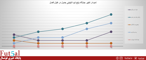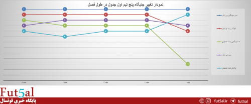 تغییر جایگاه پنج تیم ابتدایی جدول ردهبندی تا پایان هفته پنجم