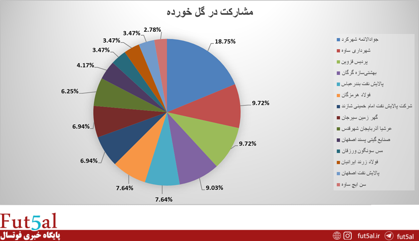 بیشترین گلخورده: جوادالائمه شهرکرد (۲۷ گلخورده)