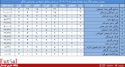نتایج تیمهای در طول فصل بر اساس عملکرد داخل و خارج از خانه