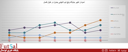 تغییر جایگاه پنج تیم ابتدایی جدول ردهبندی تا پایان هفته هفتم