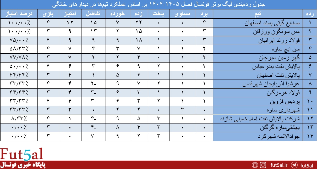 بیشترین مساوی: شهرداری ساوه، فولاد هرمزگان و عرشیا آذربایجان شهرقدس (۳ تساوی)