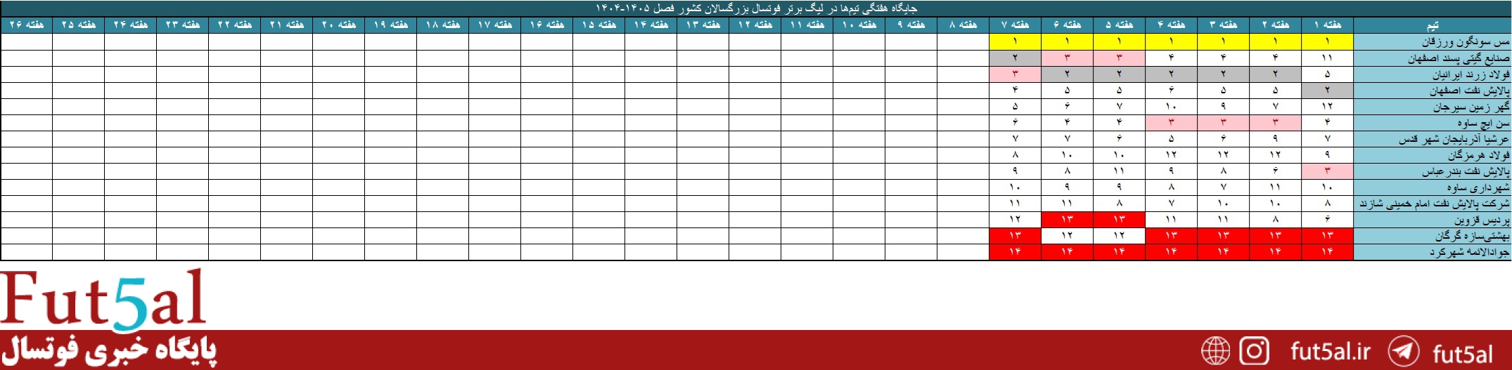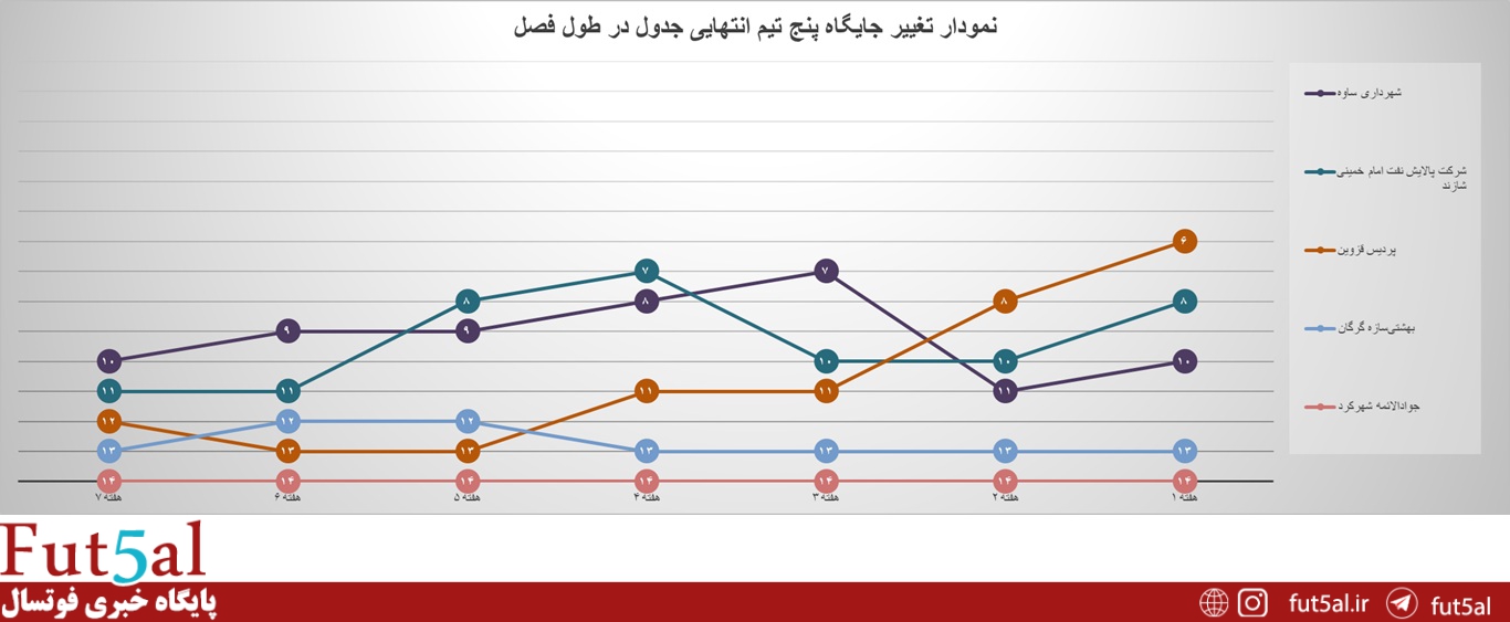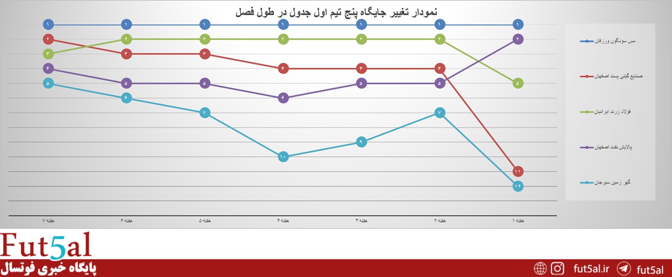 تغییر جایگاه پنج تیم ابتدایی جدول ردهبندی تا پایان هفته هفتم
