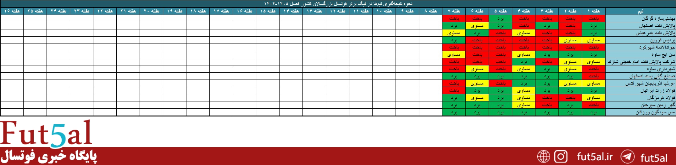 نتایج تیمهای در طول فصل بر اساس عملکرد داخل و خارج از خانه