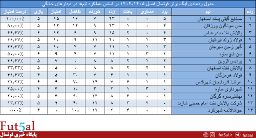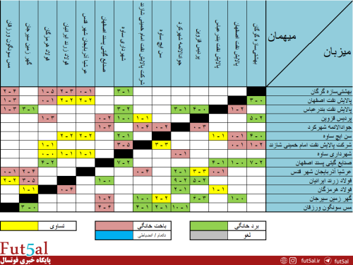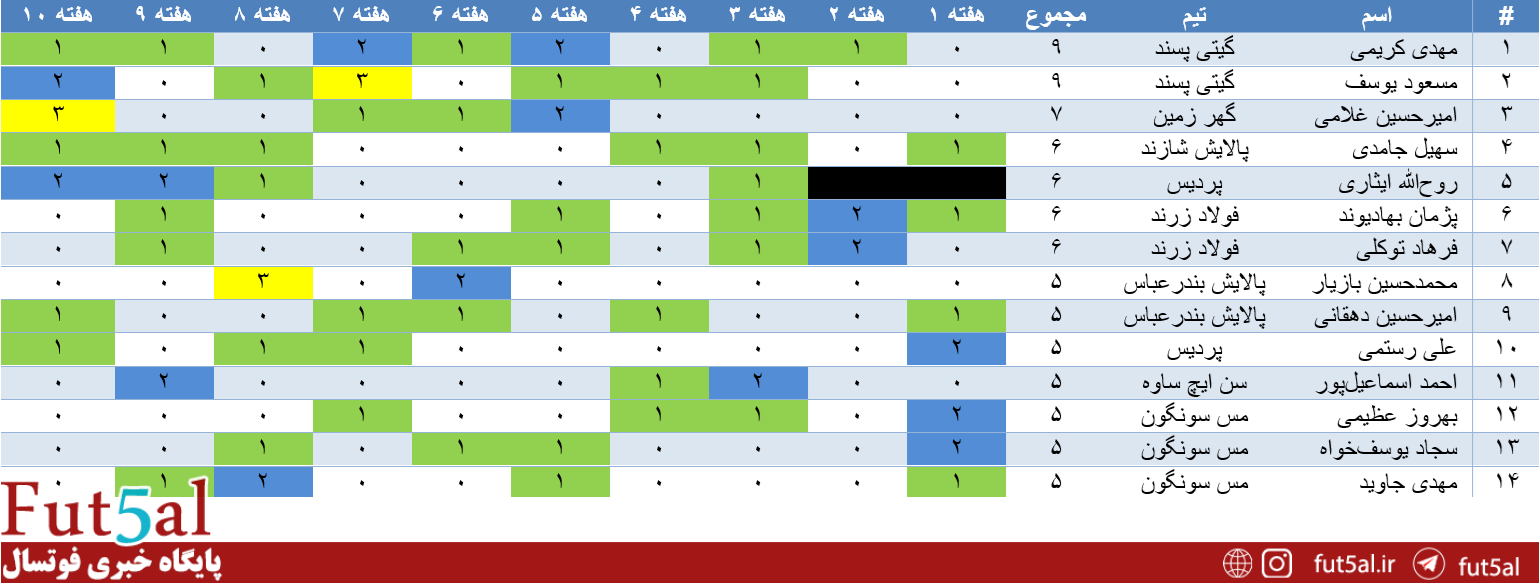 پایگاه خبری فوتسال/ سعید پروا، هر هفته به مرور آماری بازیهای لیگ برتر خواهیم پرداخت. بر این اساس آمار بازیهای لیگ پس از پایان هفته دهم به شرح زیر است
