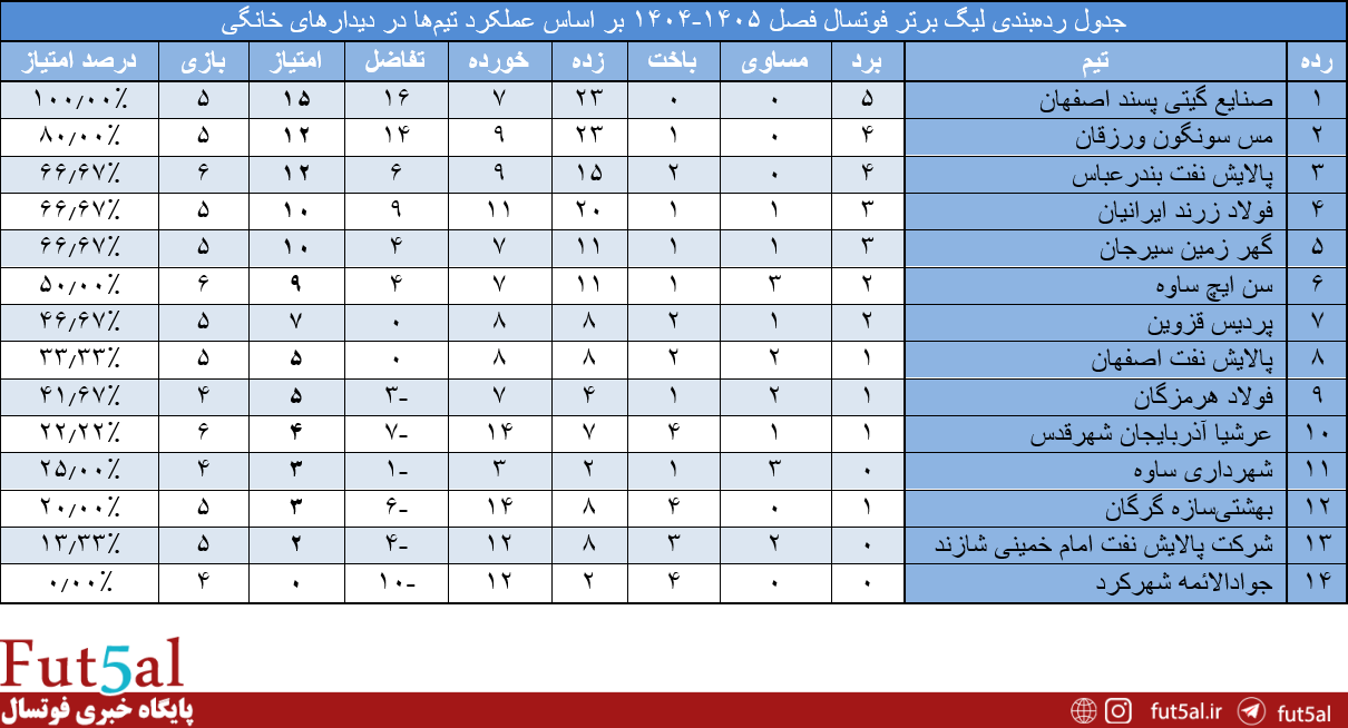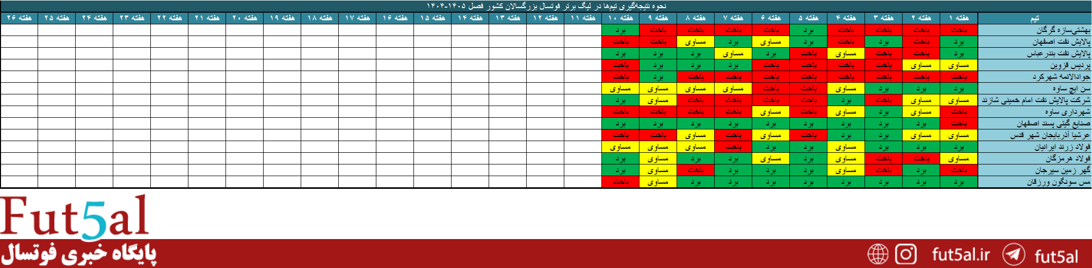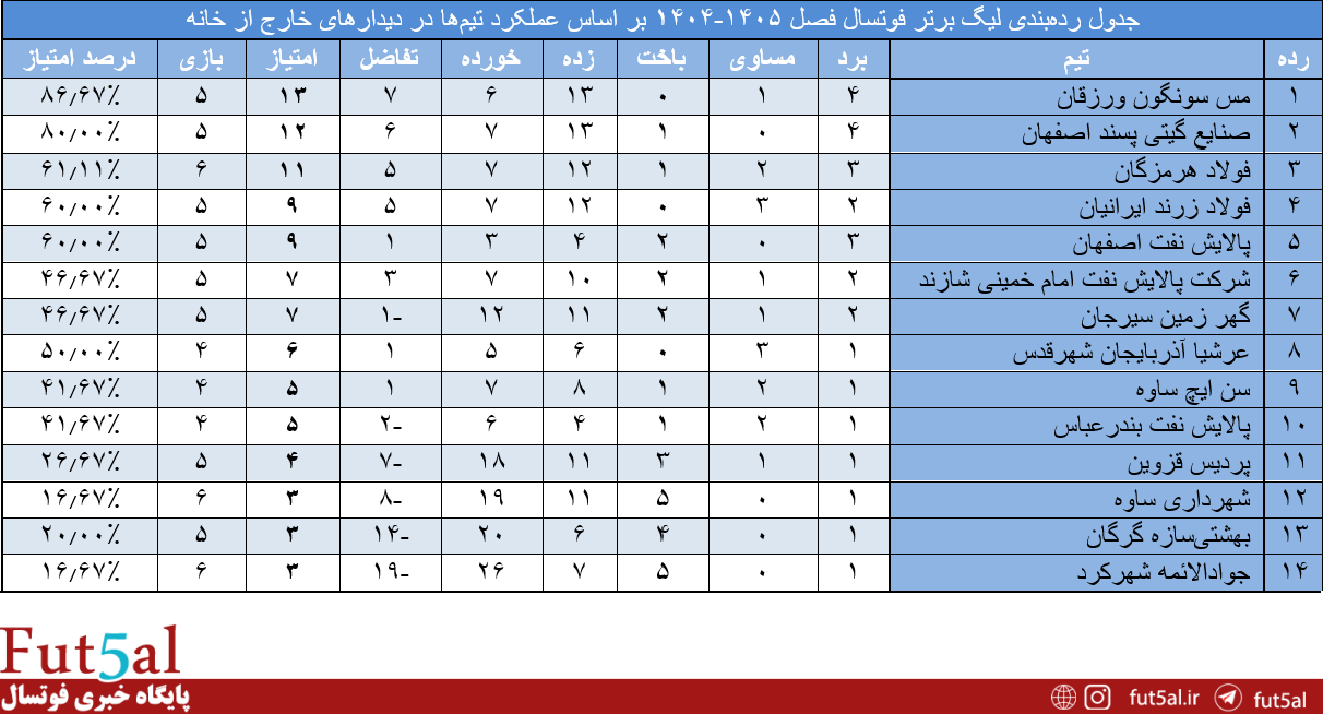 نتایج تیمهای در طول فصل بر اساس عملکرد داخل و خارج از خانه