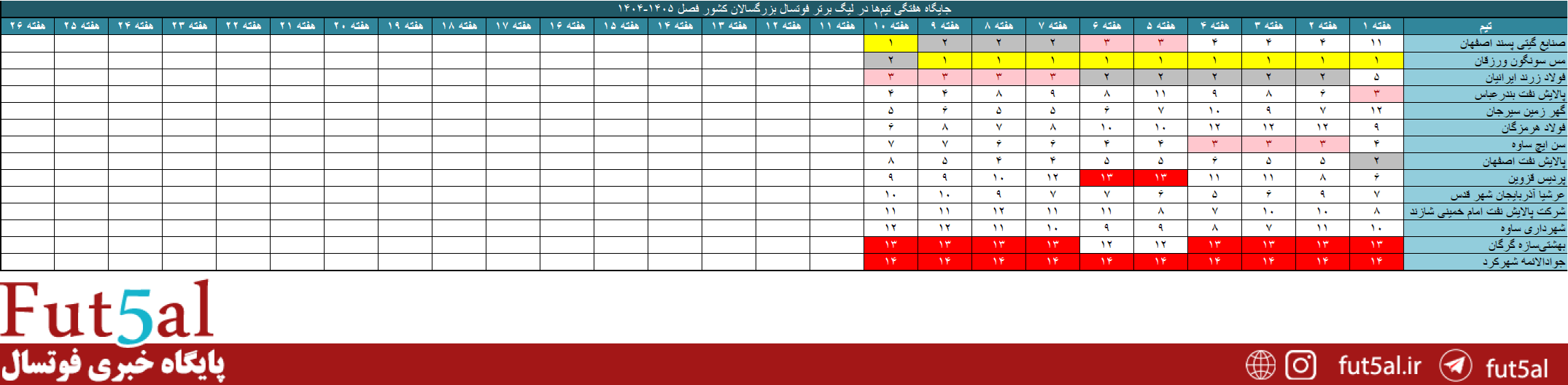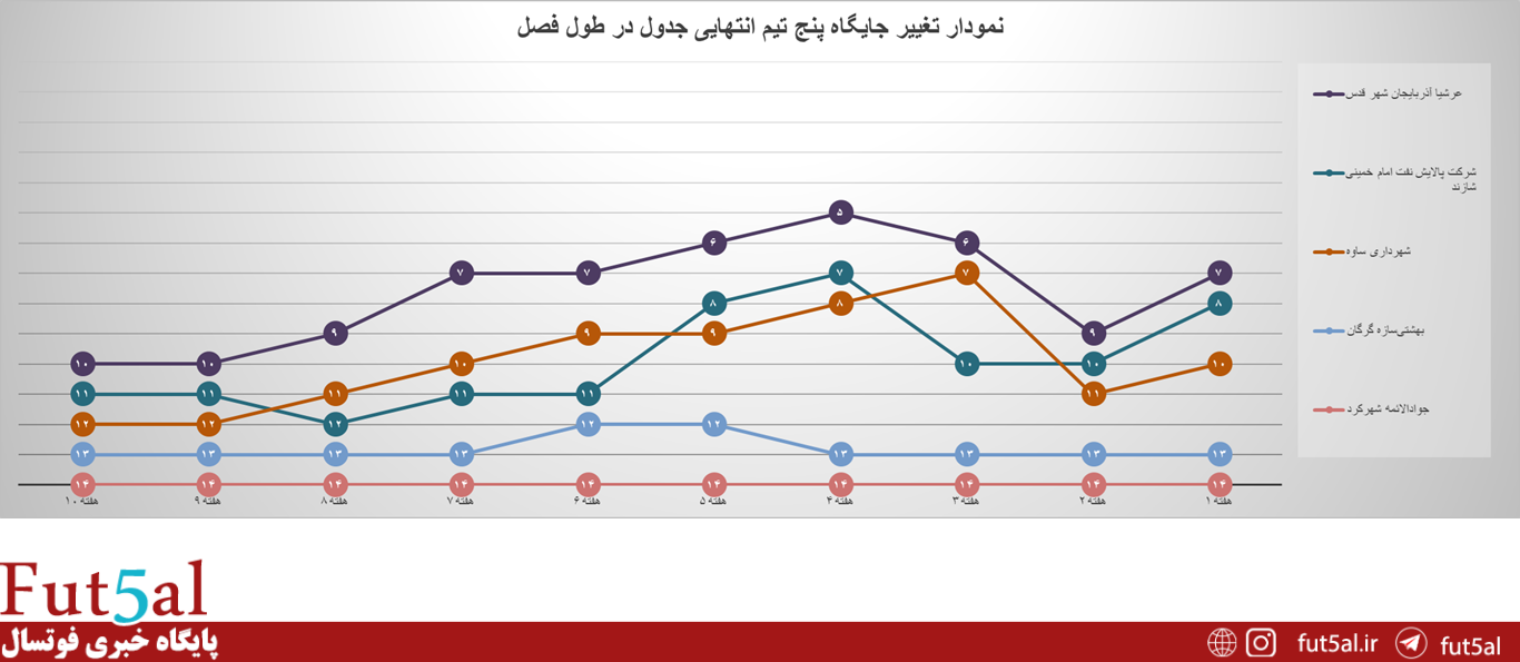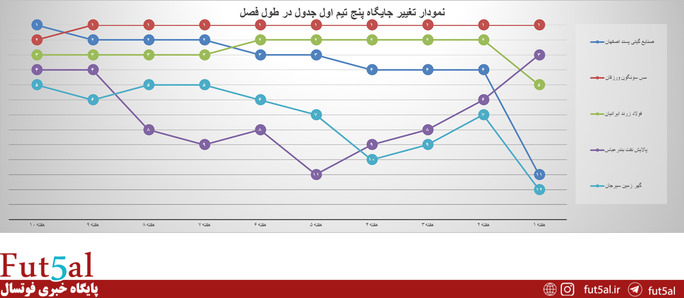 تغییر جایگاه پنج تیم ابتدایی جدول ردهبندی تا پایان هفته دهم