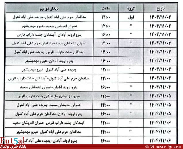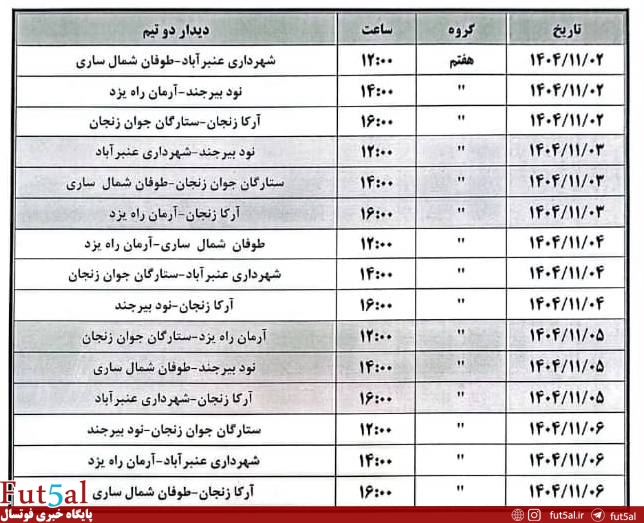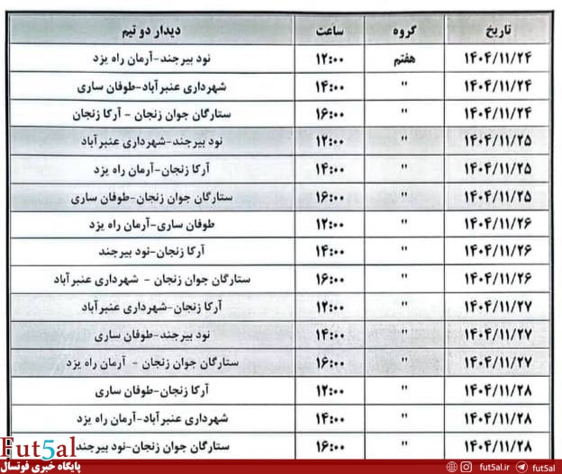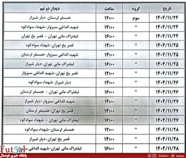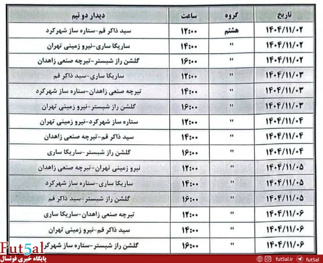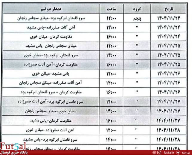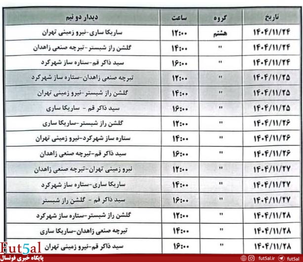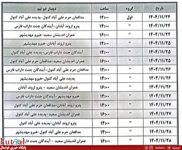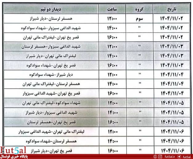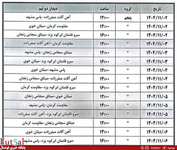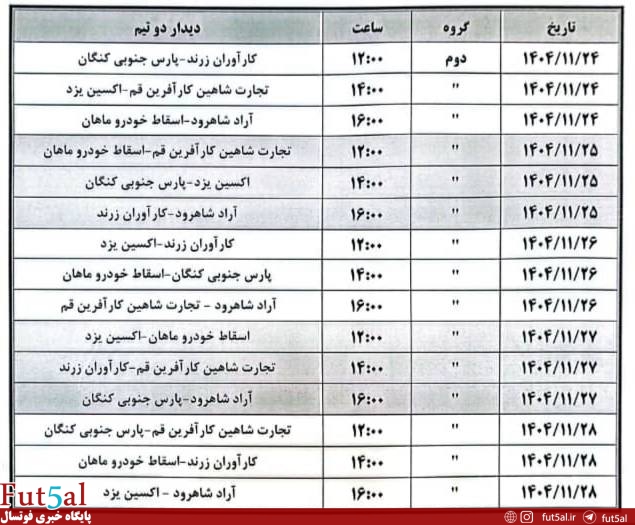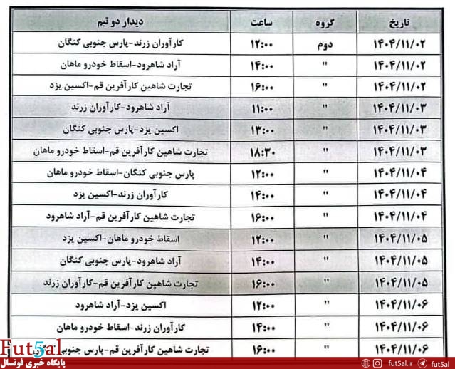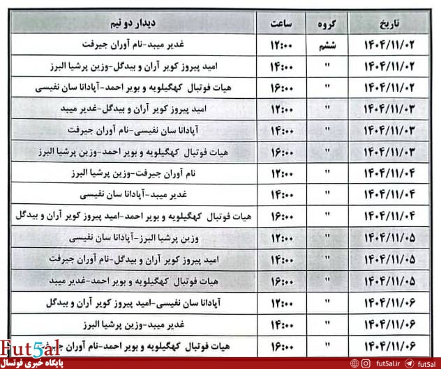برنامه دور رفت و برگشت مسابقات لیگ دسته دوم فوتسال