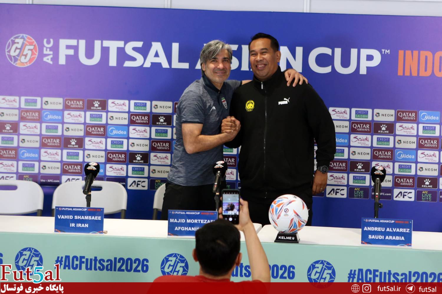 به گزارش پایگاه خبری فوتسال، در این نشست، وحید شمسایی سرمربی تیم ملی فوتسال ایران با تأکید بر احترام به تمامی رقبا در این گروه گفت: ما برای همه تیمهای حاضر در گروه احترام قائلیم، اما انتظار بیشتری از اندونزی بهعنوان میزبان مسابقات داشتیم. بهجز شرایط هتل، سایر شرایط برای برگزاری مسابقات مناسب نیست. نور سالن کافی نیست، تهویه مناسبی وجود ندارد و با توجه به نوع کفپوش و تعریق بازیکنان که باعث خیس شدن زمین میشود، بهشدت نگران سلامتی بازیکنان هستیم.