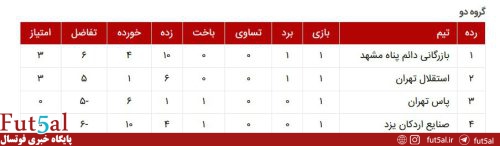 نتایج کامل و جدول بازیها امروز به شرح زیر است:
