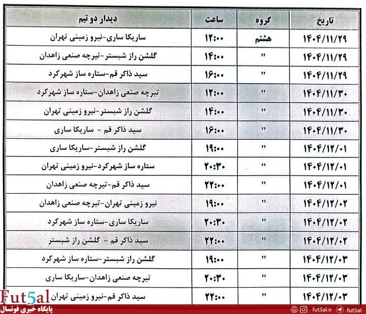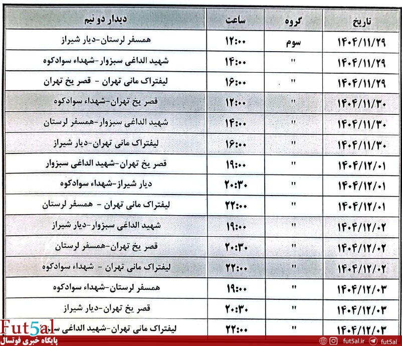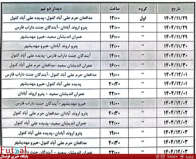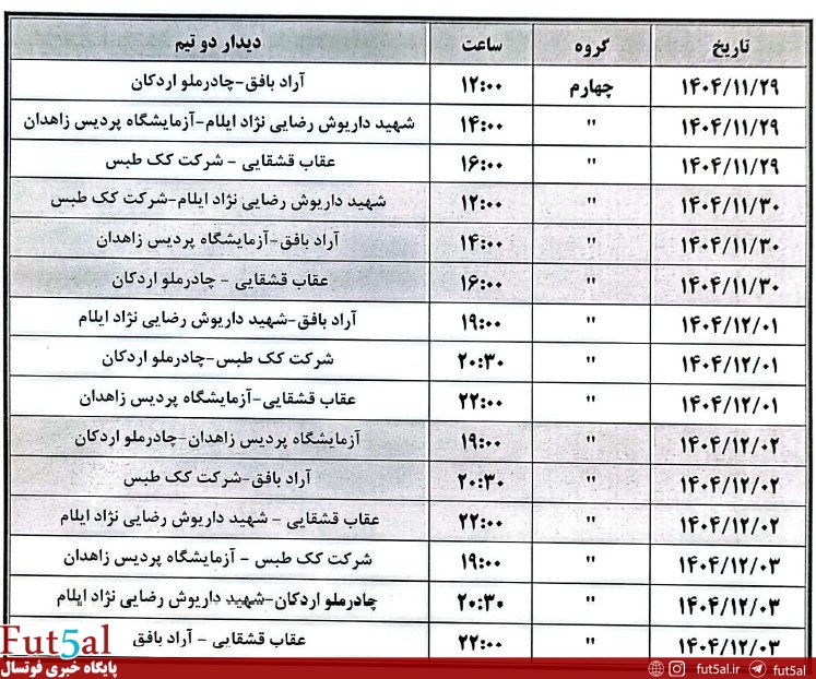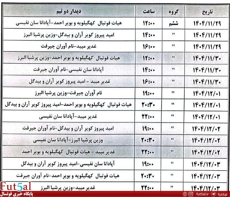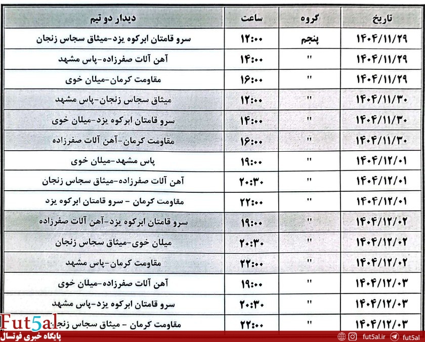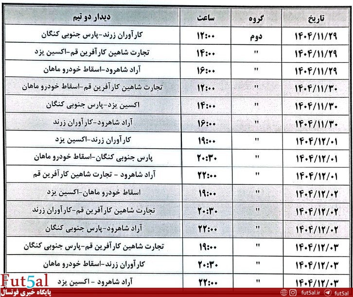 برنامه دور برگشت مسابقات لیگ دسته دوم فوتسال