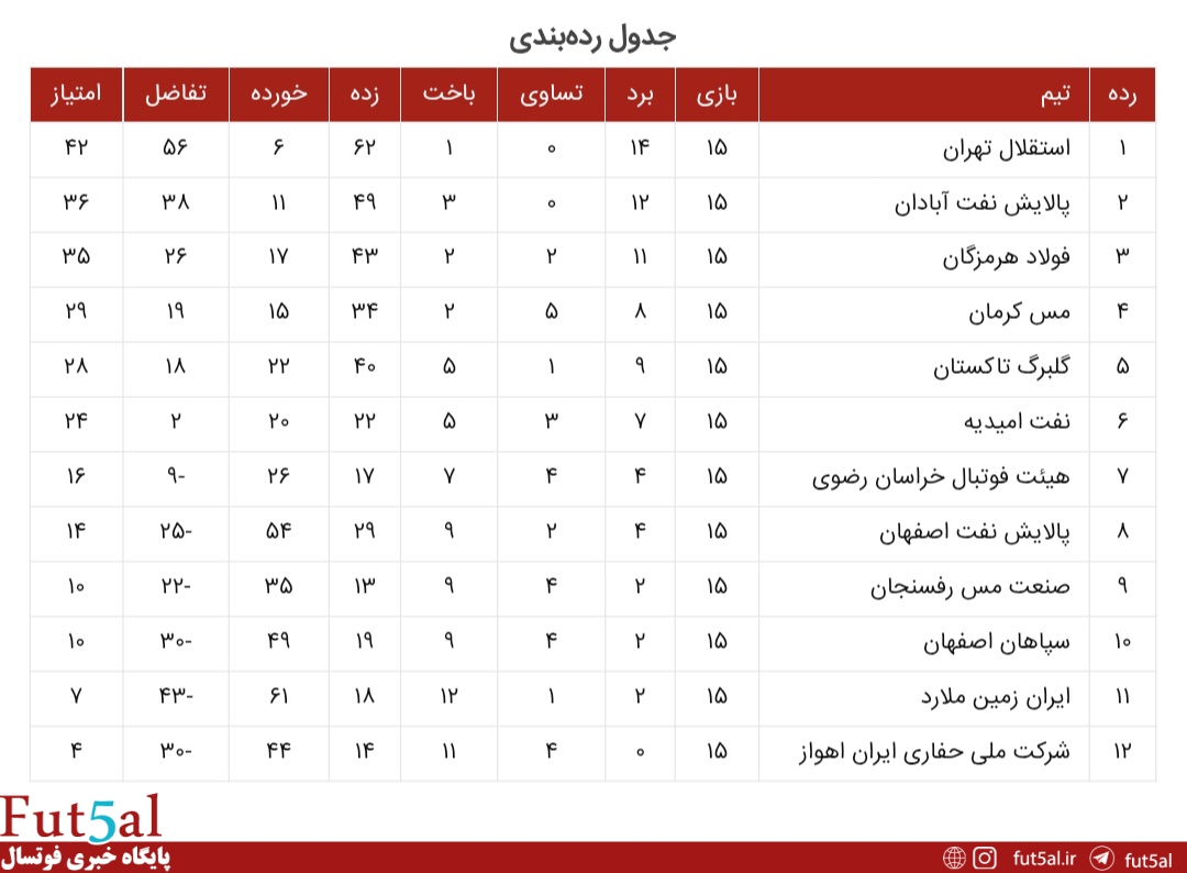 به گزارش پایگاه خبری فوتسال، هفته پانزدهم لیگ برتر فوتسال بانوان برگزار شد و نتایج زیر در آن رقم خورد: