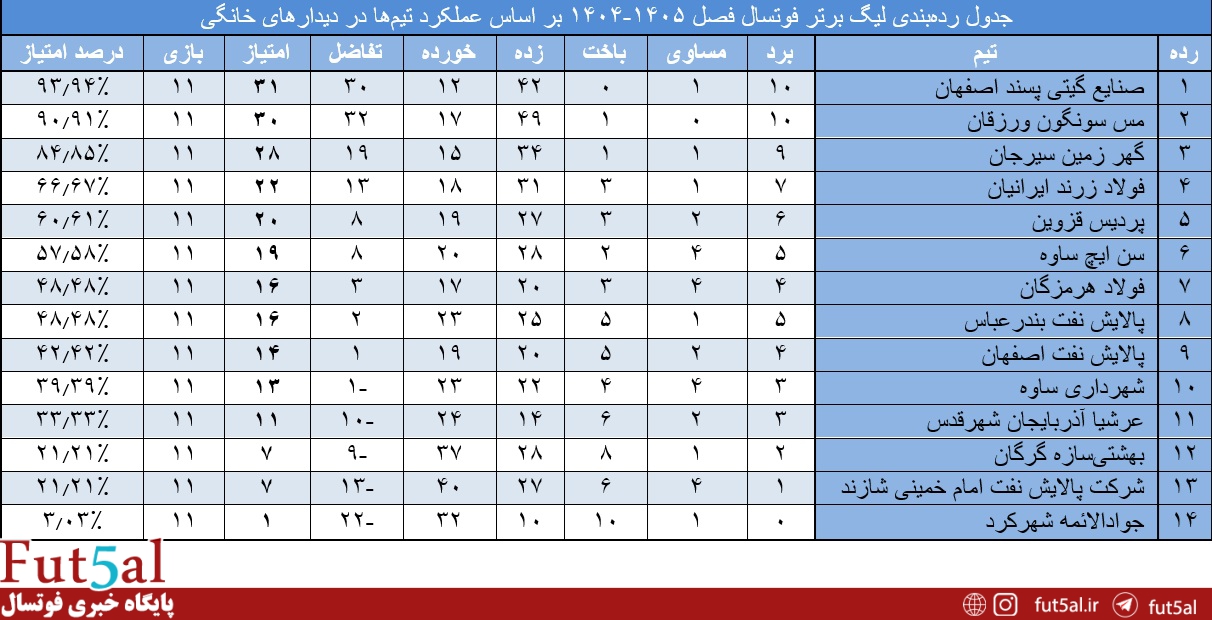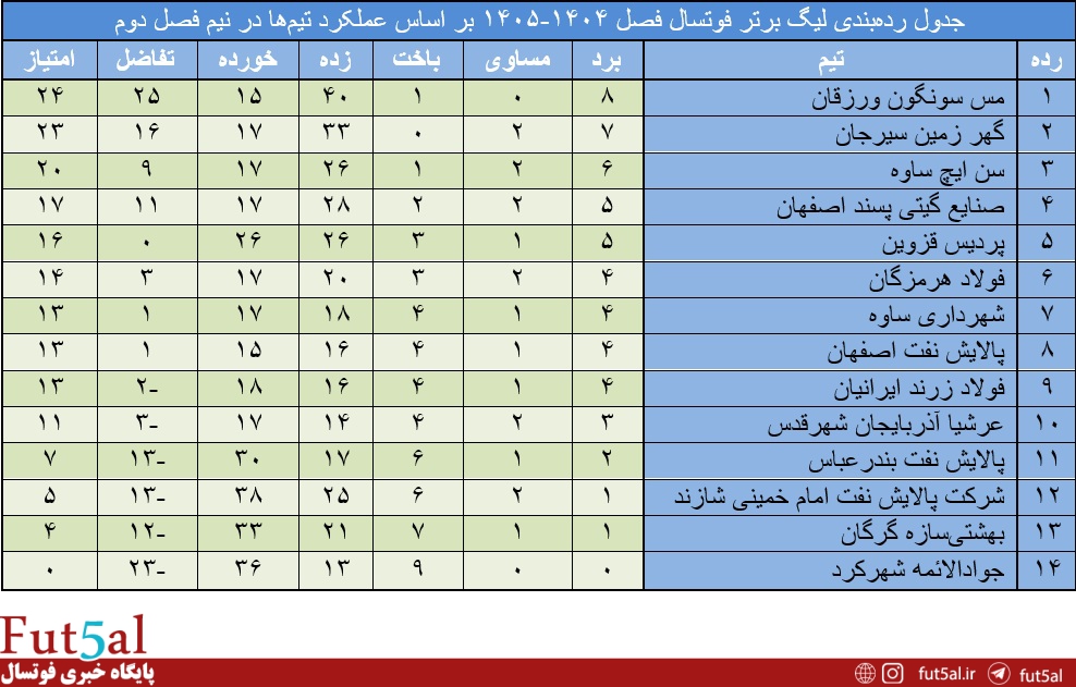 عملکرد تیمها در نیمفصل دوم بازیها