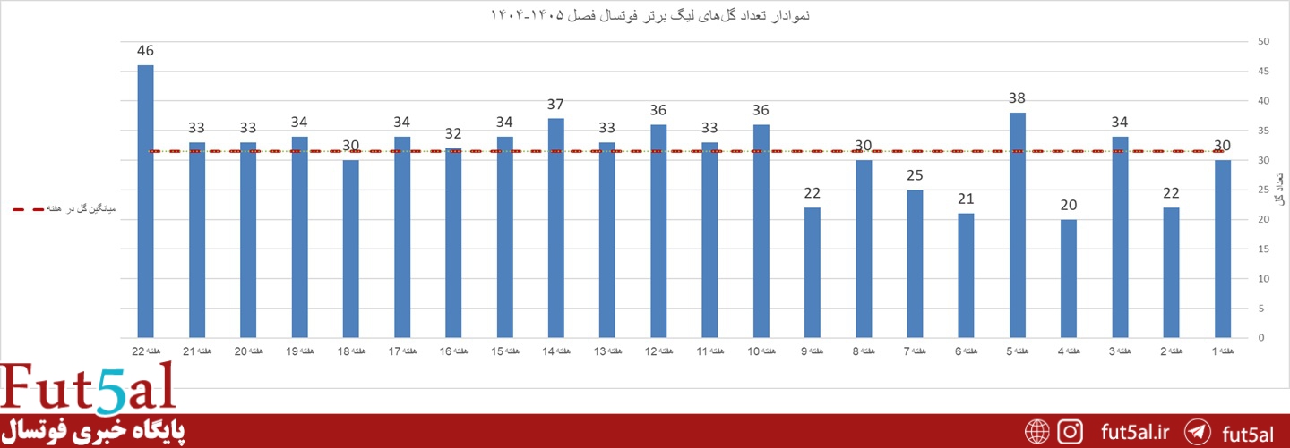 میانگین گل در هفته: ۳۱/۵۰ گل