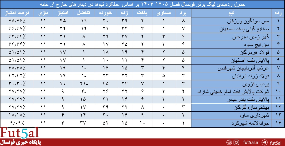 عملکرد تیمها در بازیهای خارج از خانه