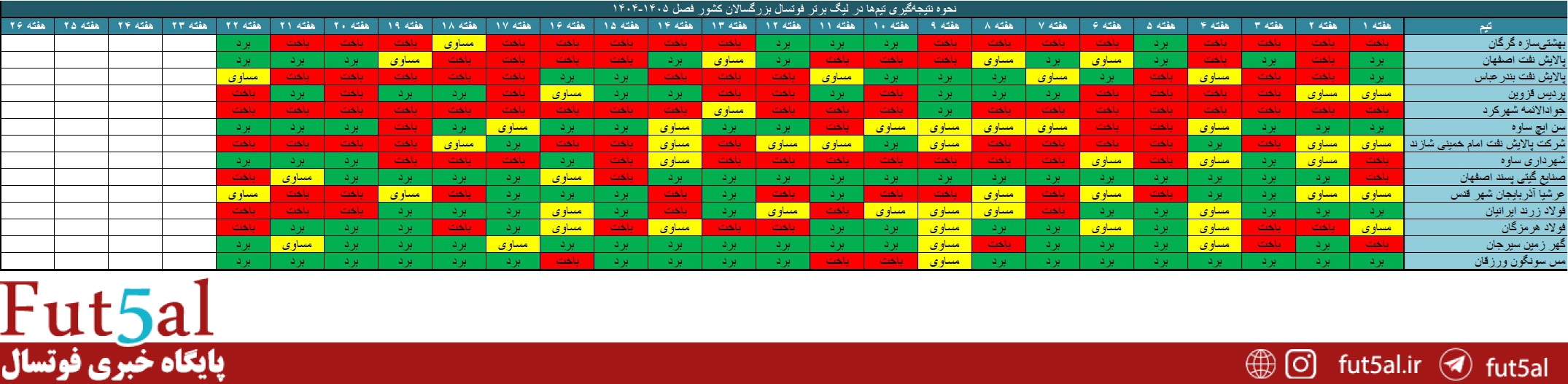 نحوه نتیجهگیری تیمها در طول فصل