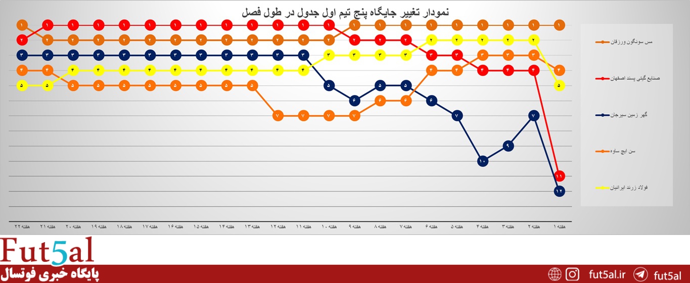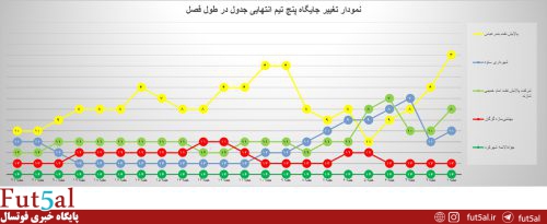 تغییر جایگاه پنج تیم ابتدایی جدول ردهبندی تا پایان هفته بیستودوم