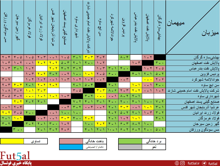 بیشترین برد: صنایع گیتی پسند اصفهان و مس سونگون ورزقان (۱۸ برد)