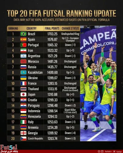 به گزارش پایگاه خبری فوتسال ، تیم ملی در رده بندی جهانی صعود کرد.