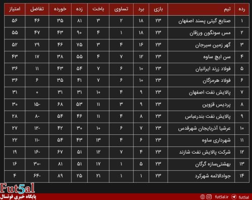 هفته بیست و سوم لیگبرتر فوتسال کشور؛