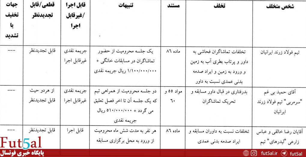 کمیته فوتسال آرای تخلفات تیم فولاد زرند در بازی مقابل سن ایچ را صادر کرد.