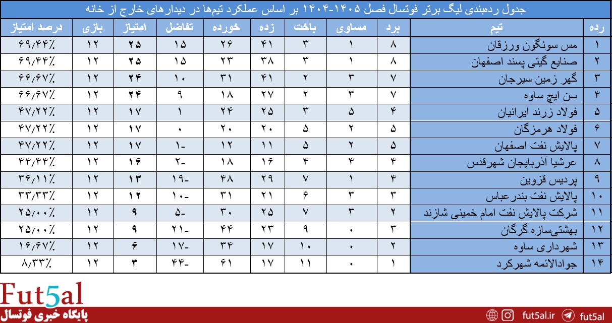 عملکرد تیمها در بازیهای خارج از خانه