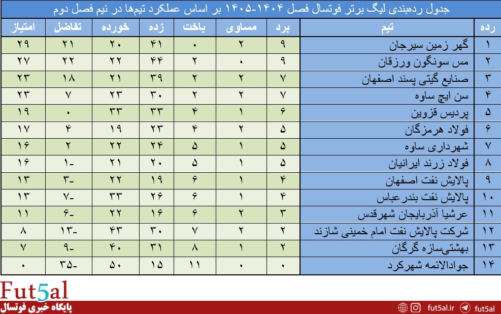 عملکرد تیمها در نیمفصل دوم بازیها