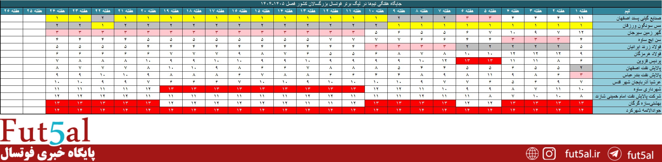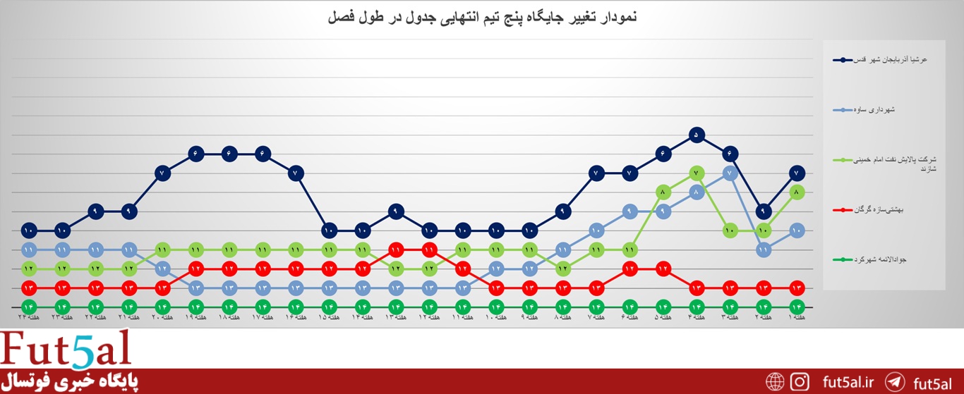 جایگاه تیمها به صورت هفتگی